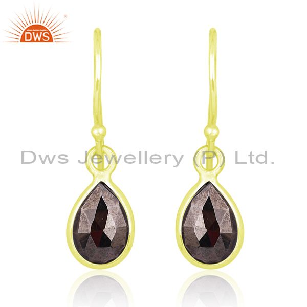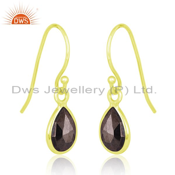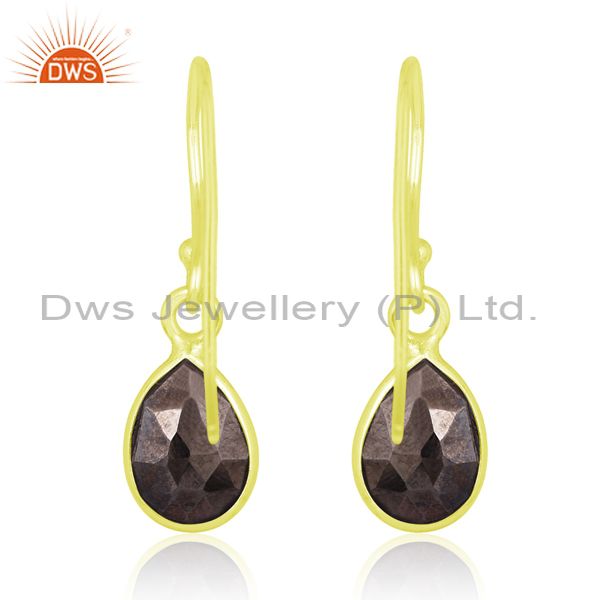 Hematite Briolette On 18K Gold Plated Silver Earrings