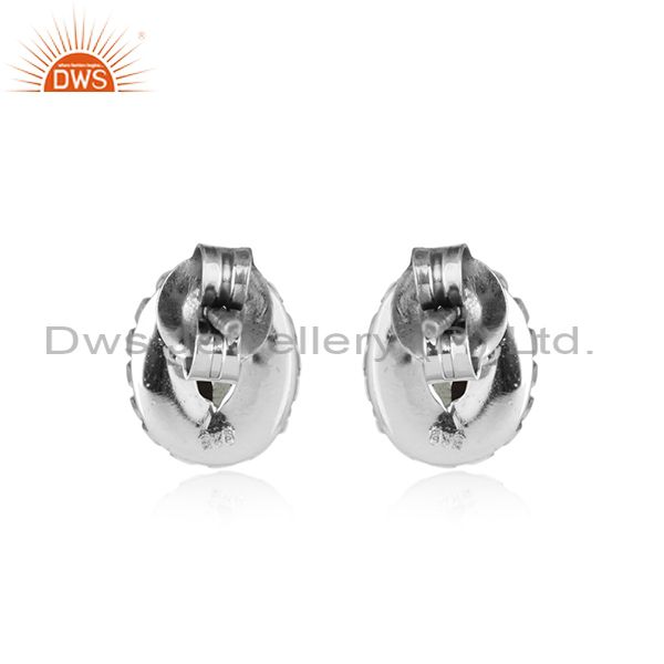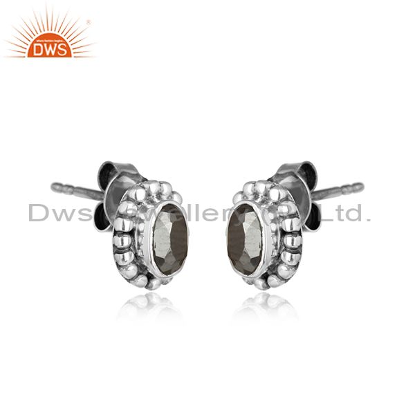 Hematite Gemstone Designer Womens Oxidized 925 Silver Stud Earring