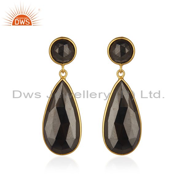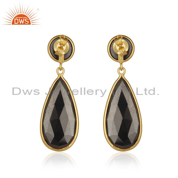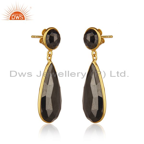 Hematite Gemstone Gold Plated 925 Silver Designer Earrings Manufacturer India