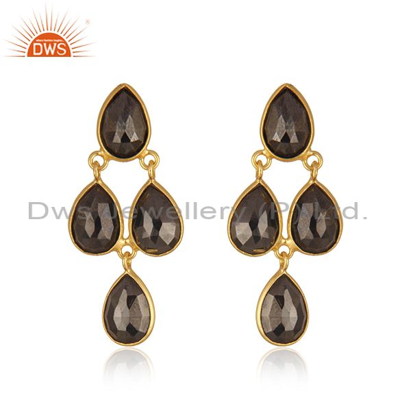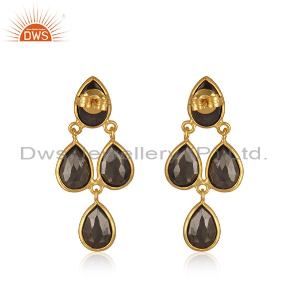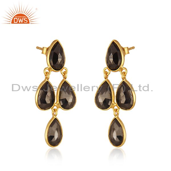Hematite Gemstone Gold Plated 925 Silver Earring Manufacturer In India