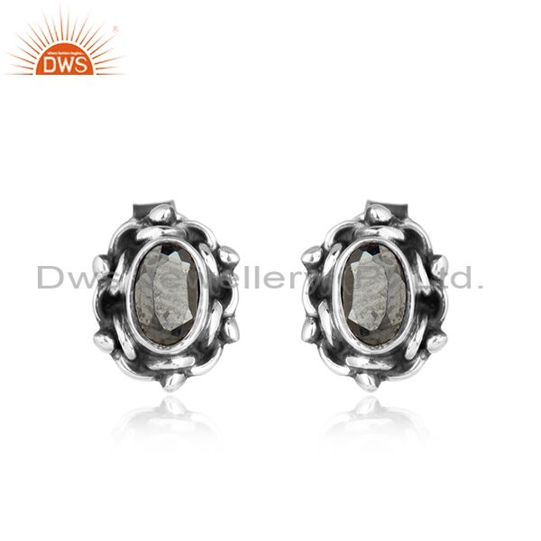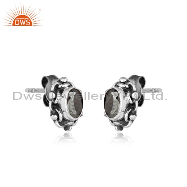 Hematite Gemstone Oxidized Designer 925 Silver Womens Earrings