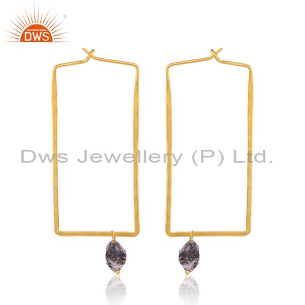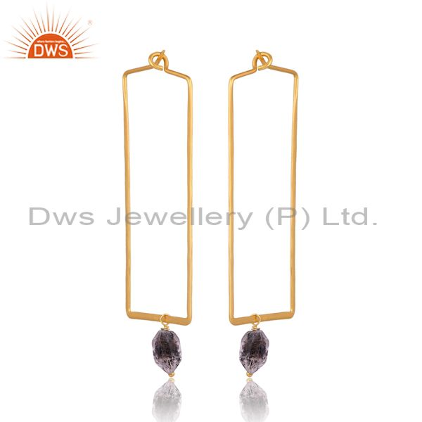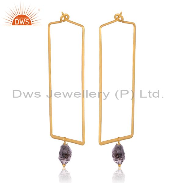 Herkimer Diamond Set Gold On Silver Abstract Design Earrings