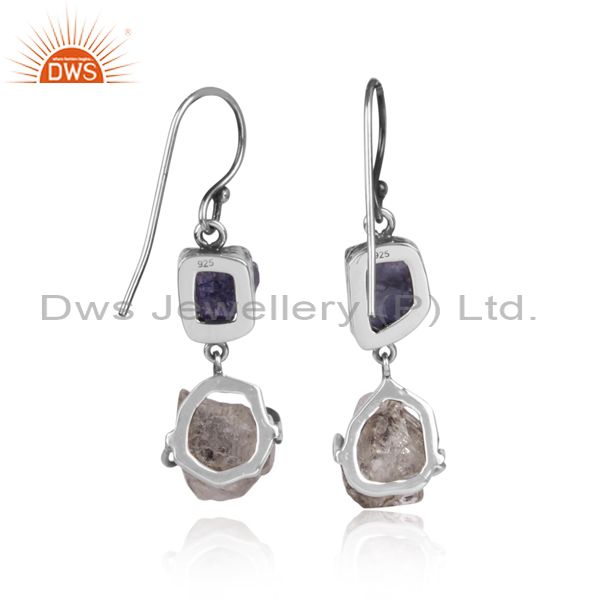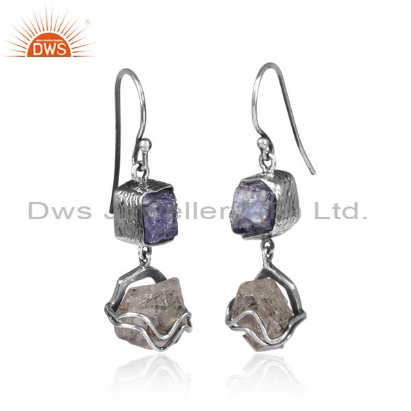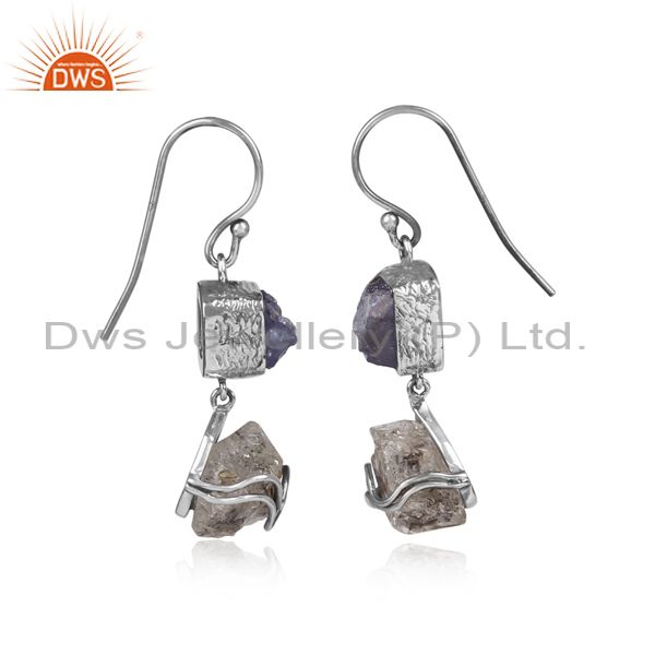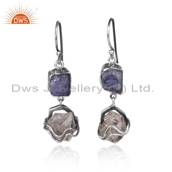 Herkimer Diamond, Tanzanite Set Fine Silver Earwire Earrings