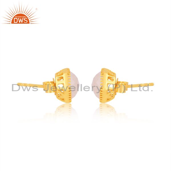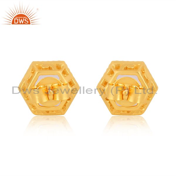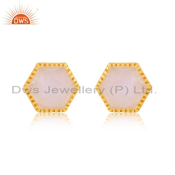Hexagon Rainbow Moon Stone Set 18K Gold On Silver Earrings