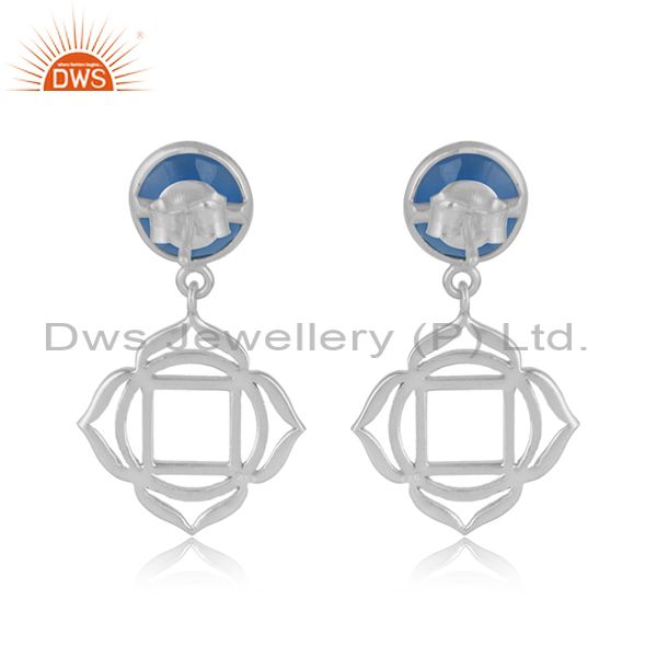 Holy Root Chakra Earring in Solid Silver with Blue Chalcedony