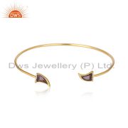 Horn Shape Gold Plated Silver Cz Blue Corundum Gemstone Earrings