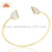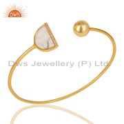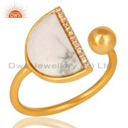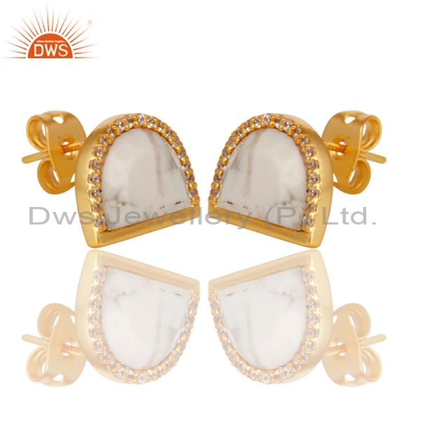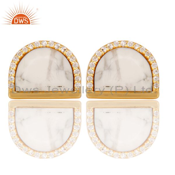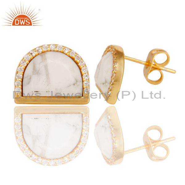 Howlite Half Moon Cz Stud Gold Plated 92.5 Sterling Silver Earring