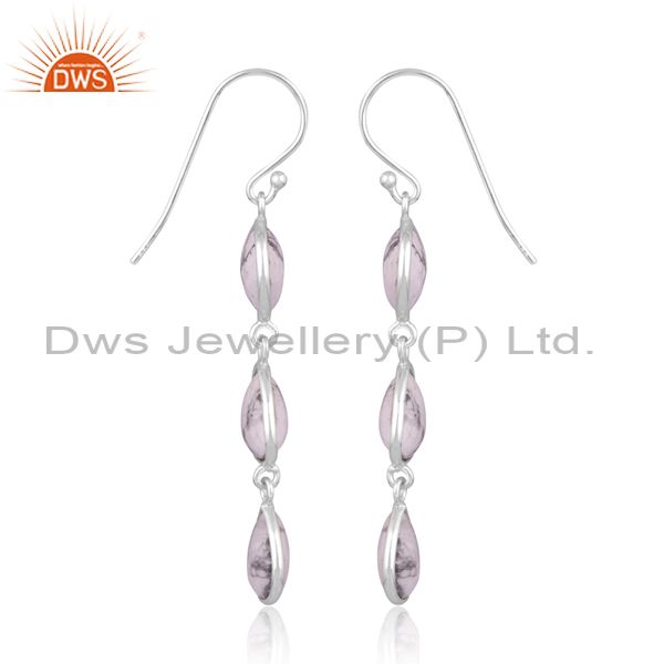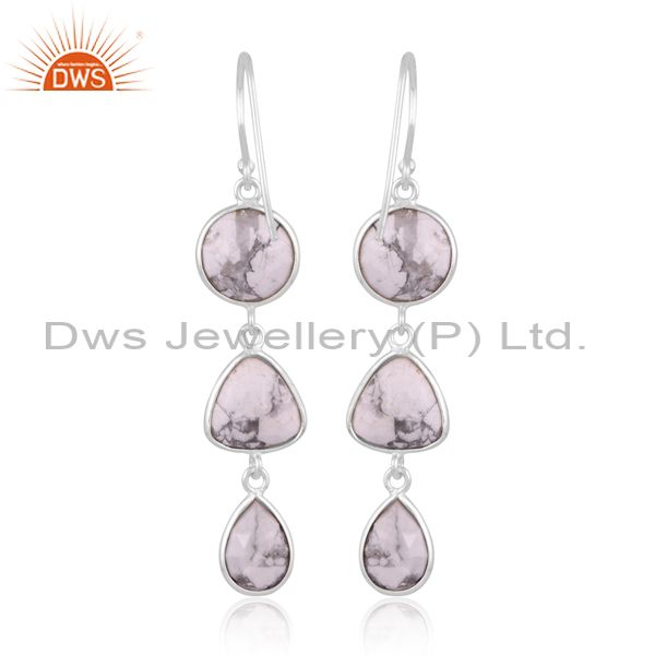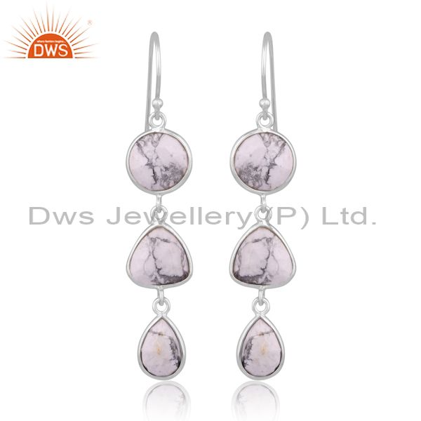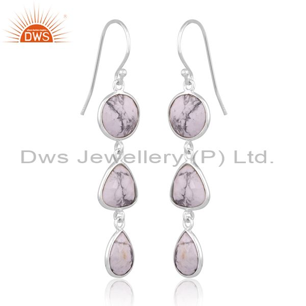 Howlite Set Fine 925 Silver Statement Long Drop Earrings