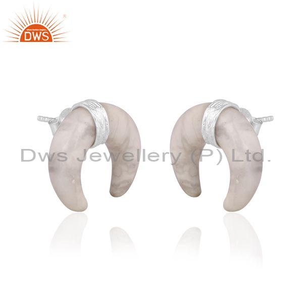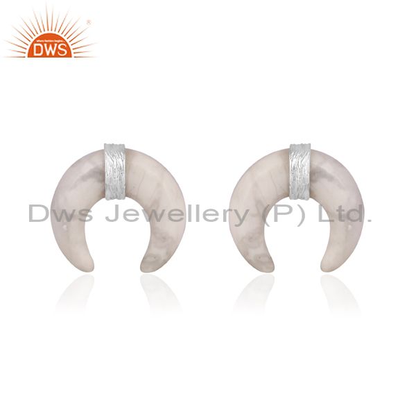 Howlite Set Fine Sterling Silver Handmade Half Moon Earrings