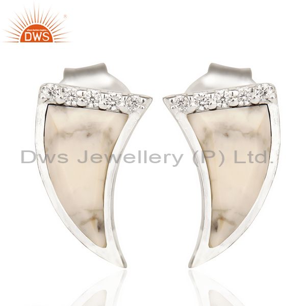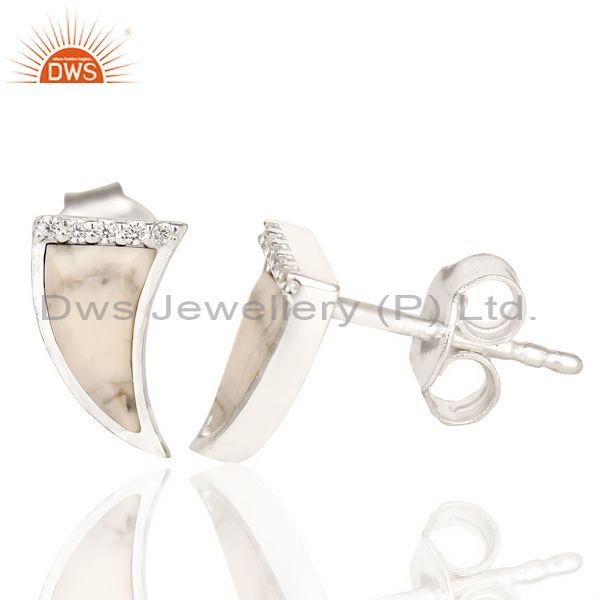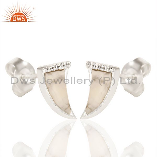 Howlite Tiny Horn Cz Studded Post 92.5 Sterling Silver Small Earring