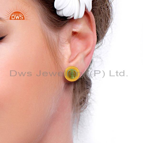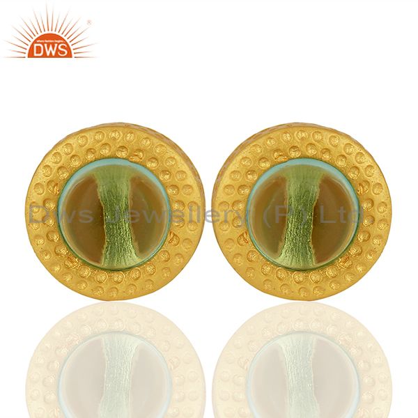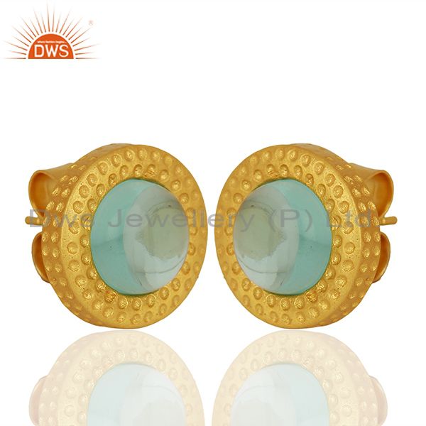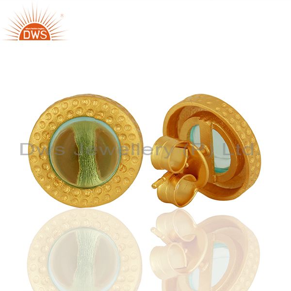 Hydro Blue Topaz Gemstone Gold Plated Brass Fashion Stud Earrings