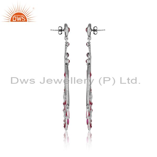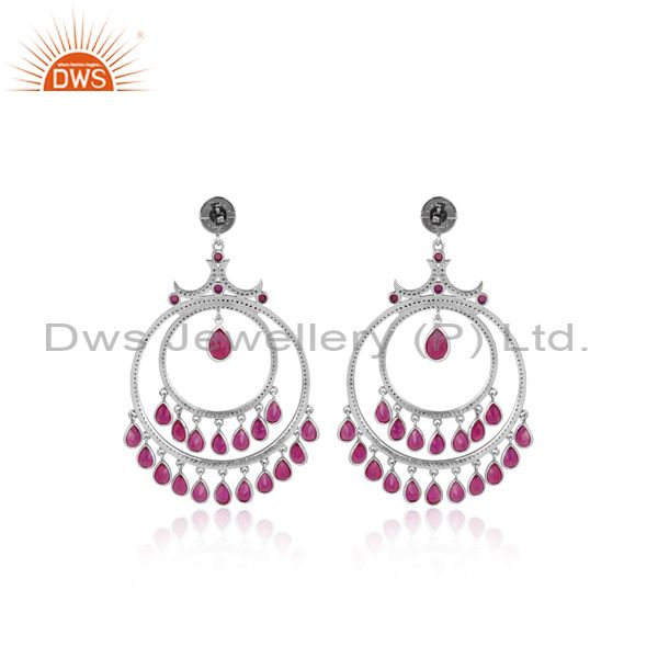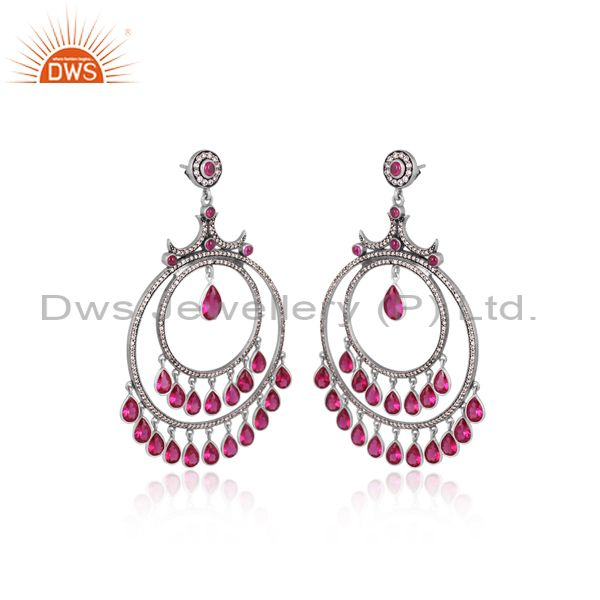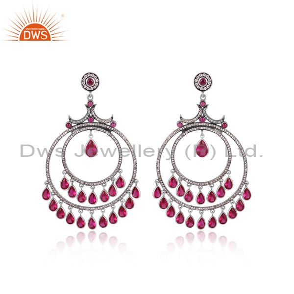 Hydro Red White Zircon Oxidized & Gold Plated Silver Earring