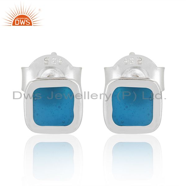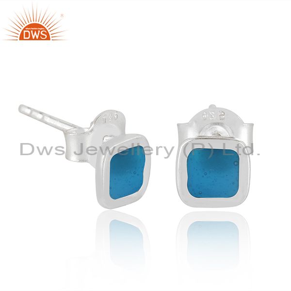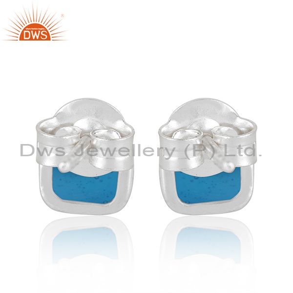 Indian 925 Fine Silver Turquoise Enamel Designer Stud Earrings Jewelry