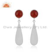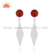 Indian 925 Silver Red Onxy Gemstone Womens Fashion Earrings Jewelry