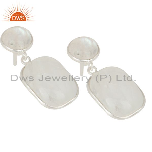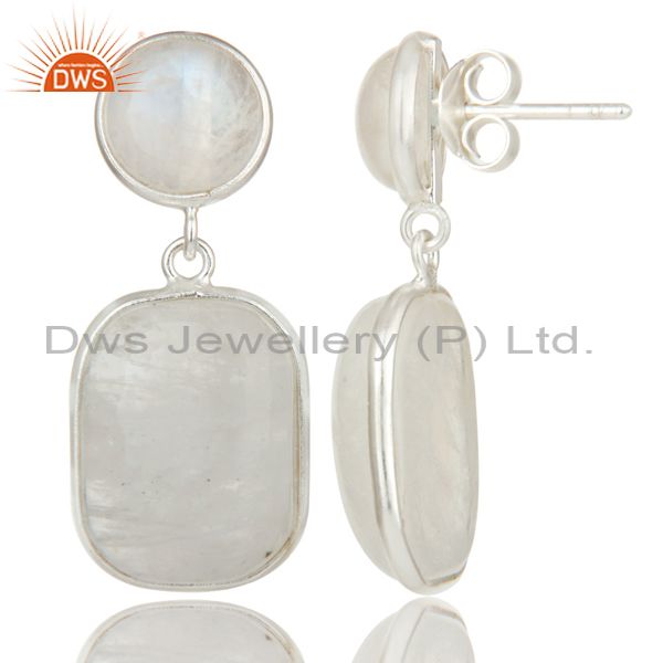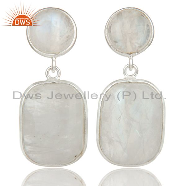 Indian Art Deco Solid 925 Sterling Silver Rainbow Moonstone Drops Earrings