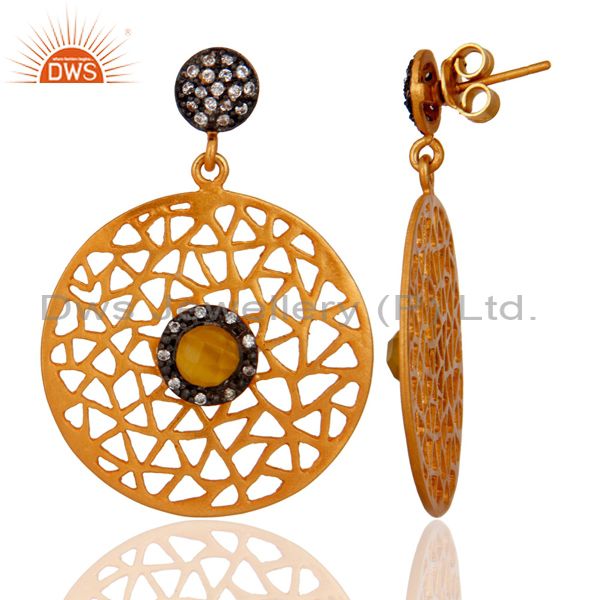 Indian Filigree Designer 18K Gold Over 925 Sterling Silver Moonstone Earrings