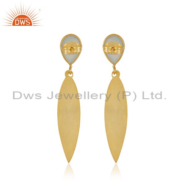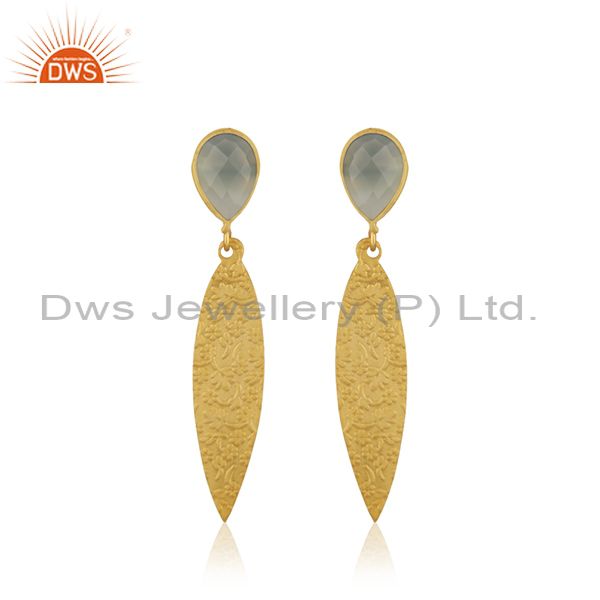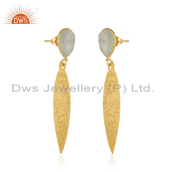 Indian Gold Plated Brass Designer Aqua Chalcedony Earrings Jewelry