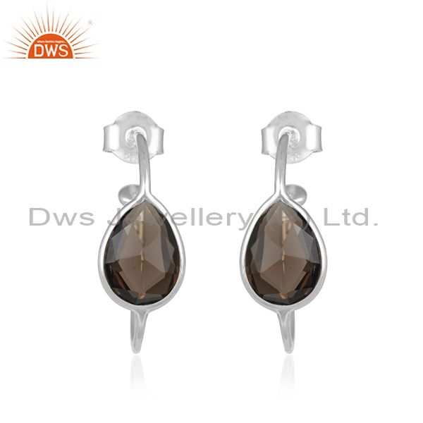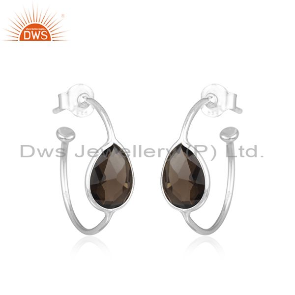 Indian Handmade 925 Fine Silver Smoky Quartz Gemstone Hoop Earrings