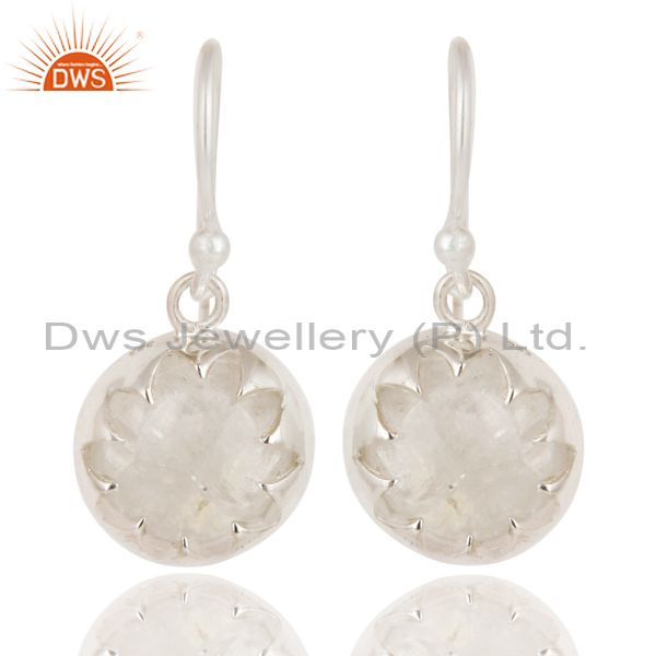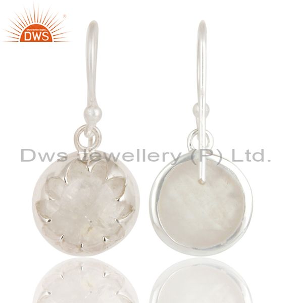 Indian Handmade 925 Sterling Silver Natural Rainbow Moonstone Dangle Earrings