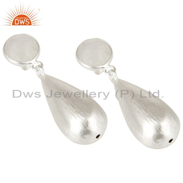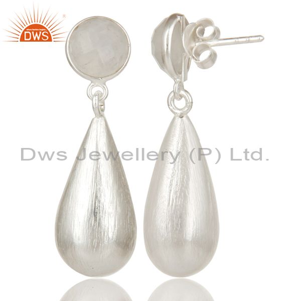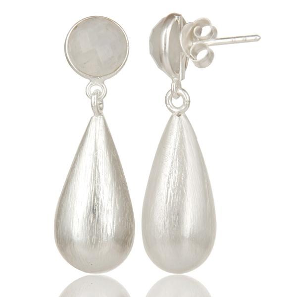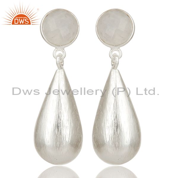 Indian Handmade 925 Sterling Silver Rainbow Moonstone Teardrop Earrings