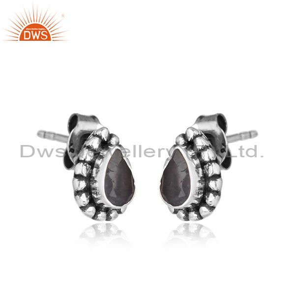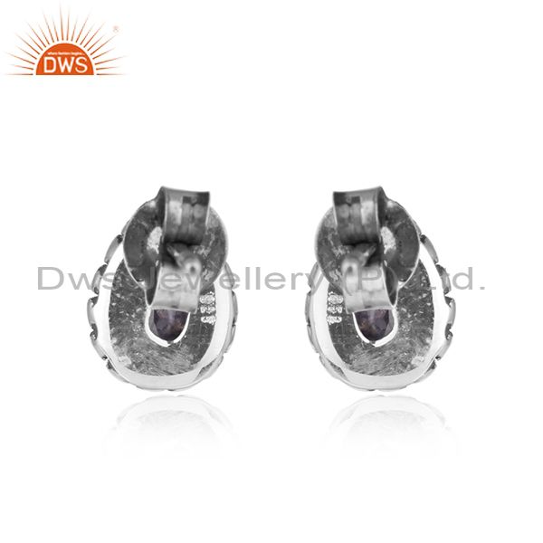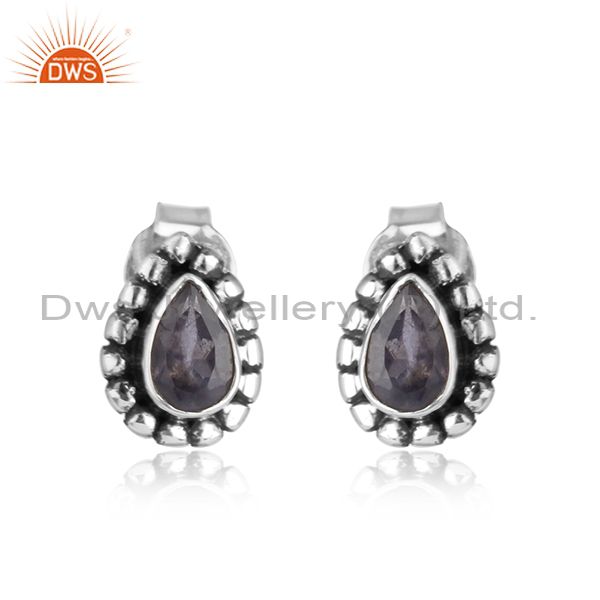 Iolite Gemstone Design Black Oxidized Silver Stud Earrings Jewelry
