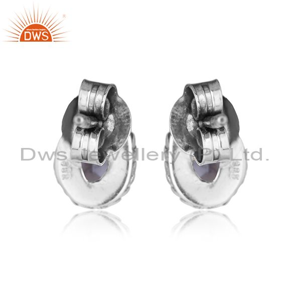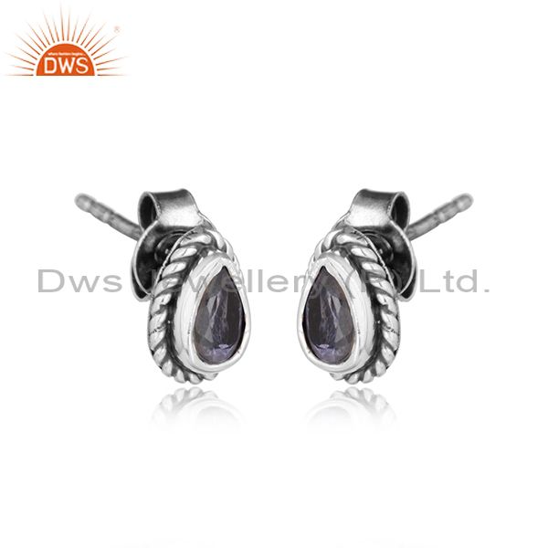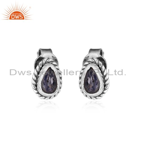 Iolite Gemstone Designer Black Oxidized 925 Silver Stud Earrings