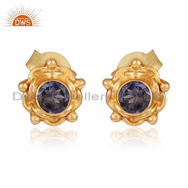 Iolite Gemstone Designer Gold Plated Silver Earrings Jewelry