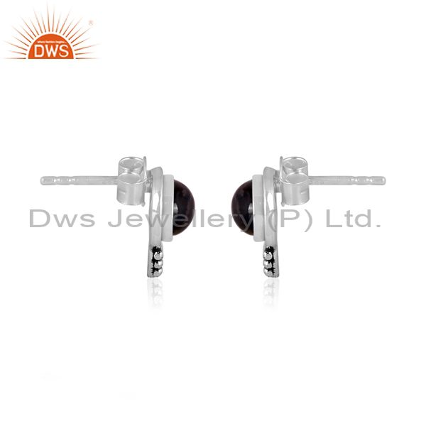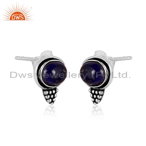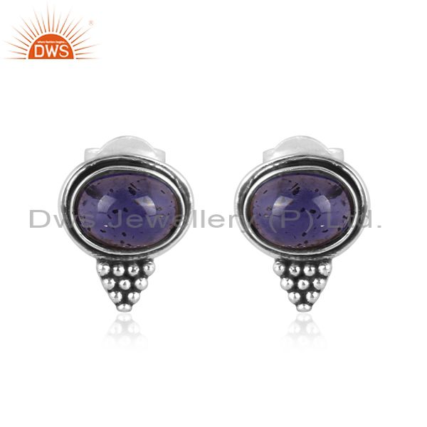 Iolite set oxidized sterling silver handmade ethnic earrings