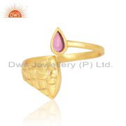Jaguar Textured Earring in Gold on Silver with Pink Tourmaline