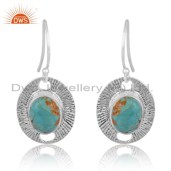 Kingman Turquoise Cabochon Oval Oxidized Silver Earring