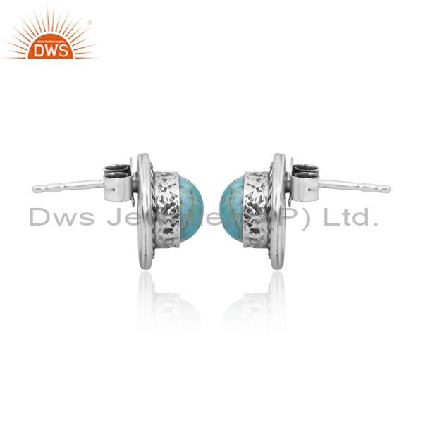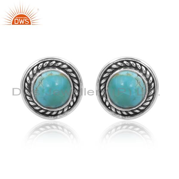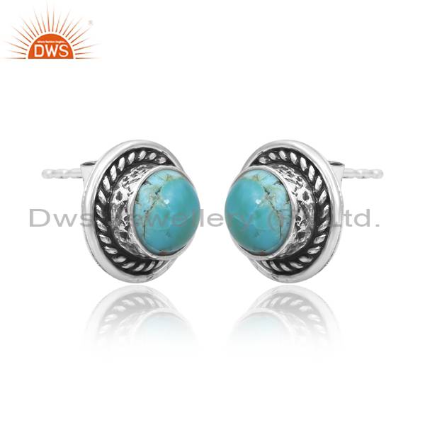 Kingman Turquoise Sterling Silver Studs With Oxidized Finish