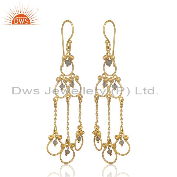 Labradorite Faceted Sterling Silver Gold long Earrings