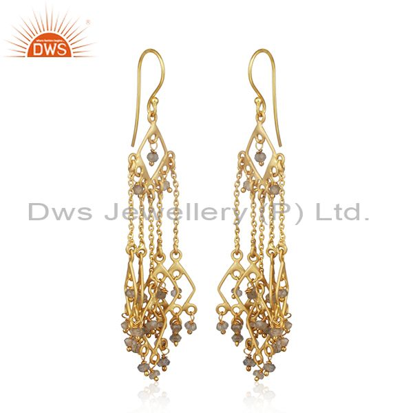 Labradorite Faceted Sterling Silver Gold Plated Earrings