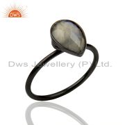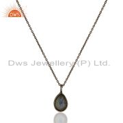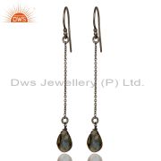 Labradorite Gemstone Bezel Set Drop Earrings Made In Oxidized Sterling Silver