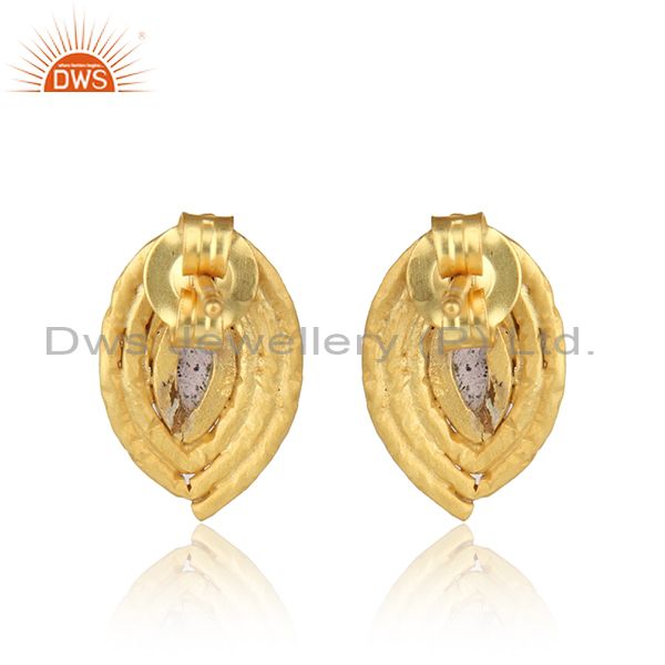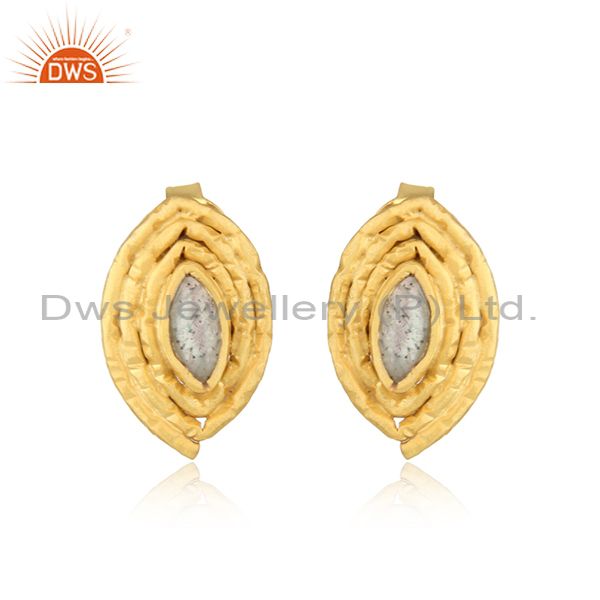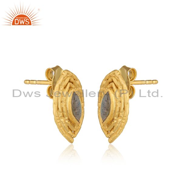 Labradorite Gemstone Designer Gold Plated 925 Silver Stud Earrings