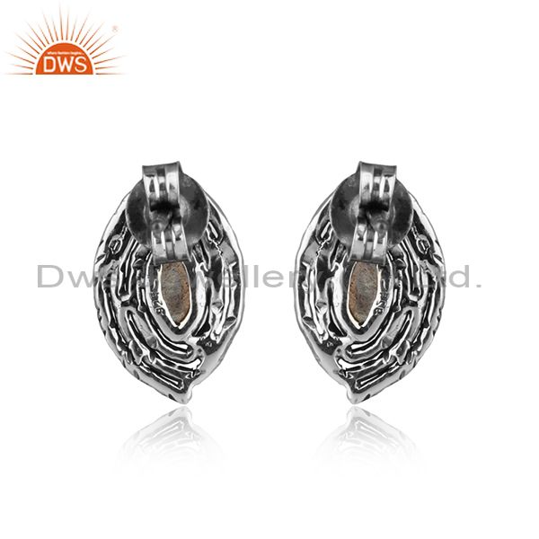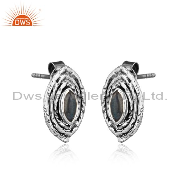 Labradorite Gemstone Oxidized 925 Silver Handmade Stud Earrings