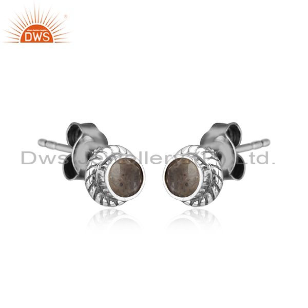 Labradorite Gemstone Oxidized Designer Sterling Silver Stud Earrings
