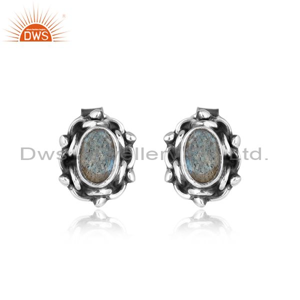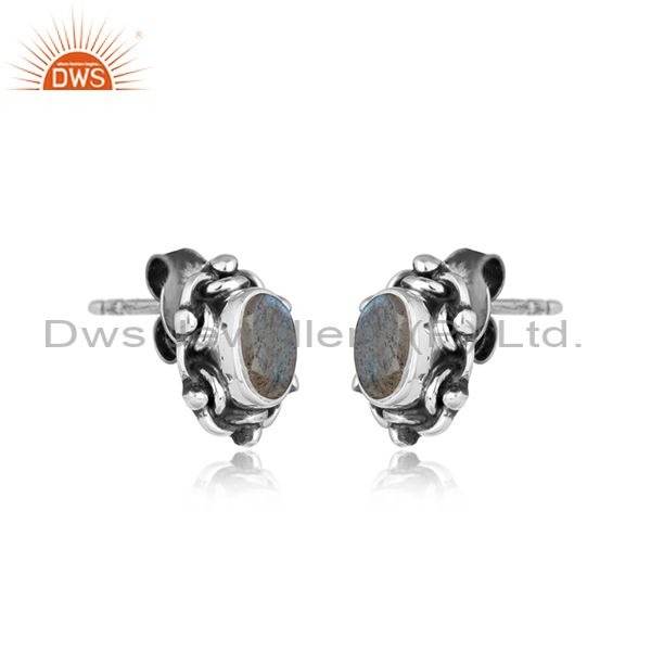 Labradorite Gemstone Womens Sterling Silver Oxidized Stud Earring
