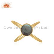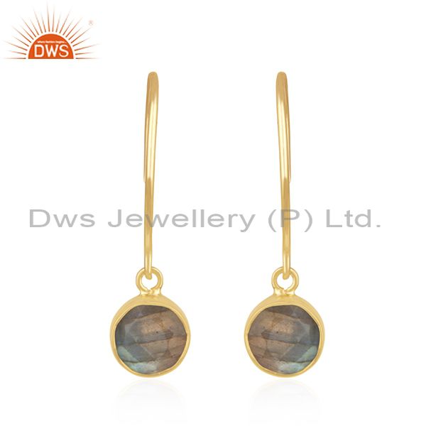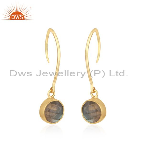 Labradorite Gemstone Yellow Gold Plated 925 Silver Womens Earring Wholesale