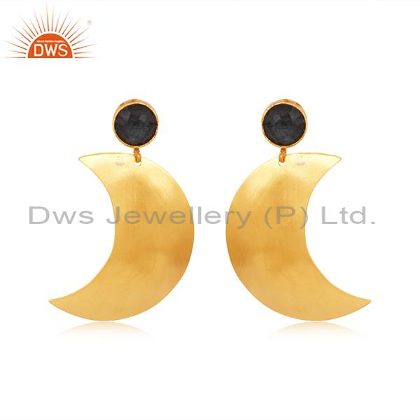 Labradorite Moon Earrings: Anti-Tarnish Essential