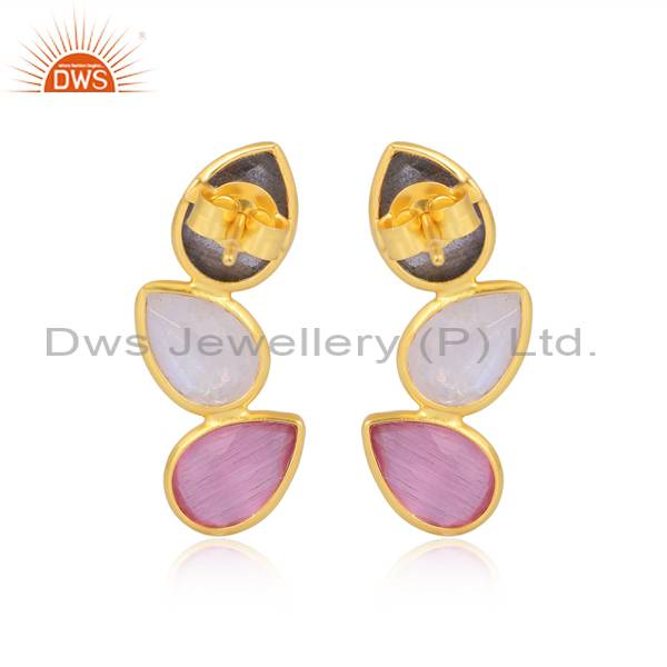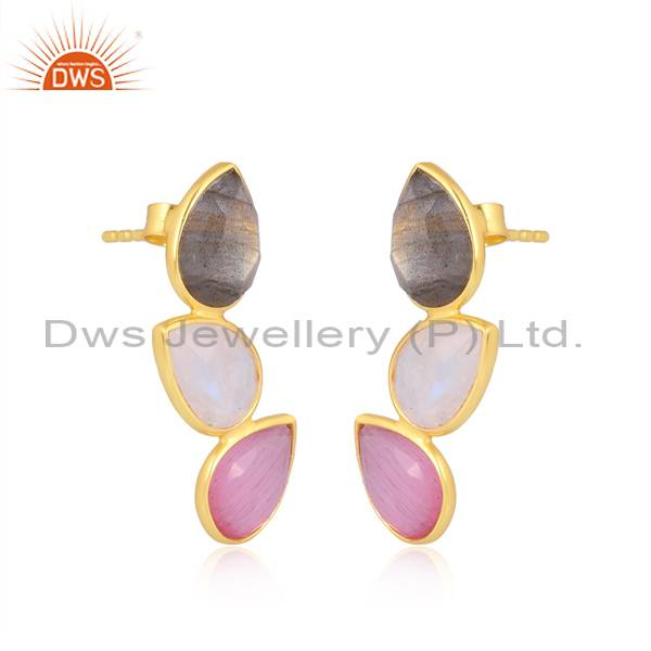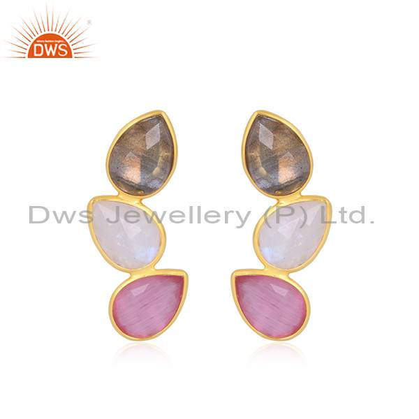 Labradorite, Pink & Rainbow Moonstone Earrings For Her