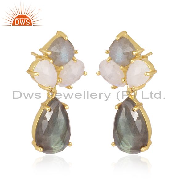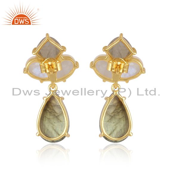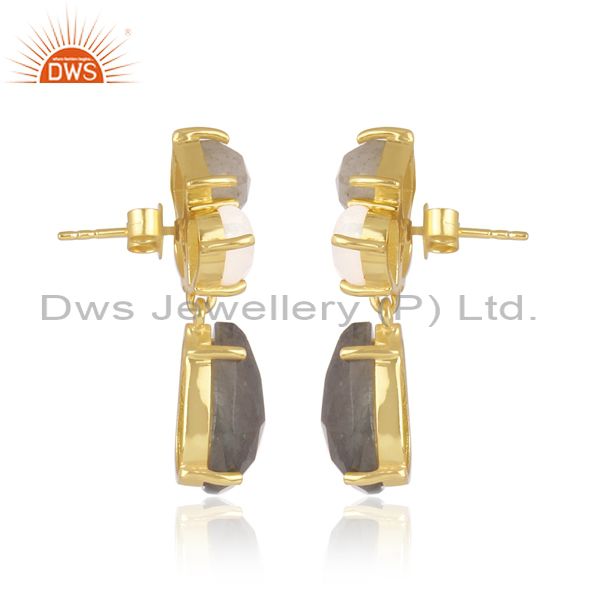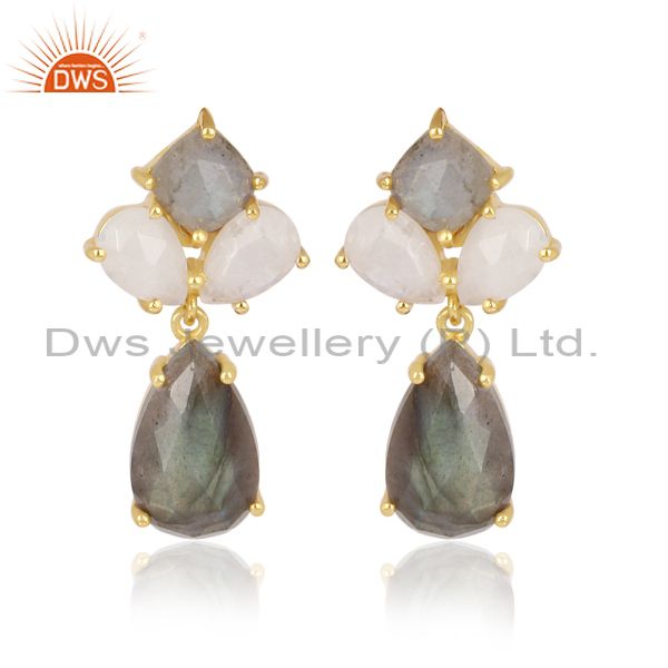 Labradorite, Rainbow Moon Stone Set Gold On Silver Earrings