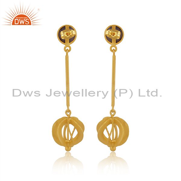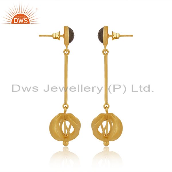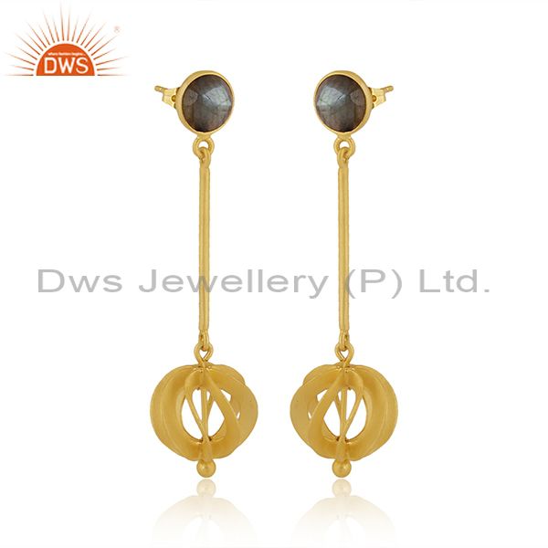 Labradorite Set Brass Gold Long Drop Classic Fancy Earrings