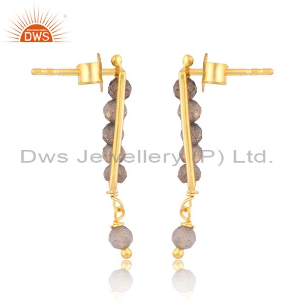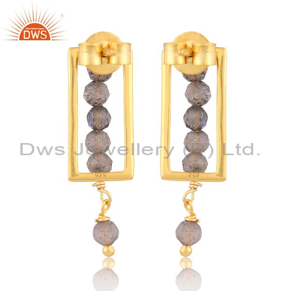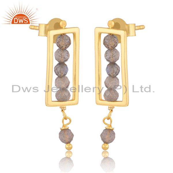 Labradorite Set Gold On 925 Silver Long Rectangular Earrings