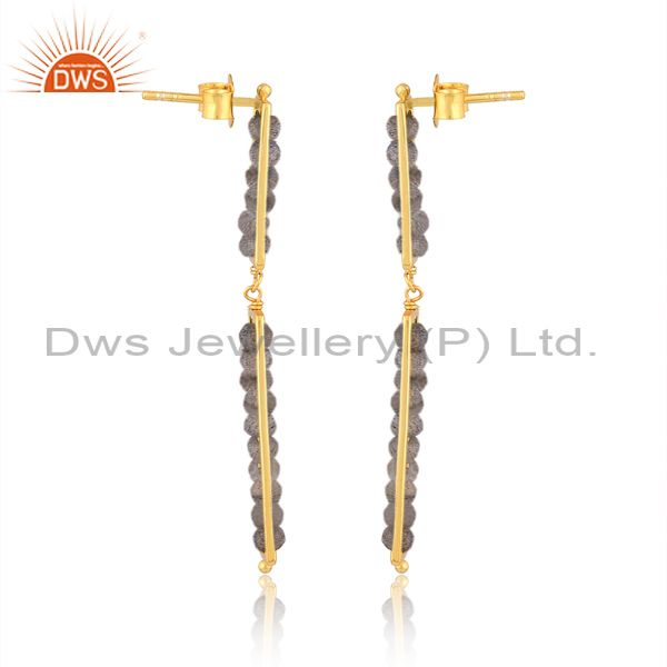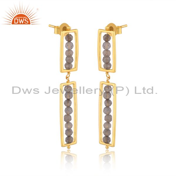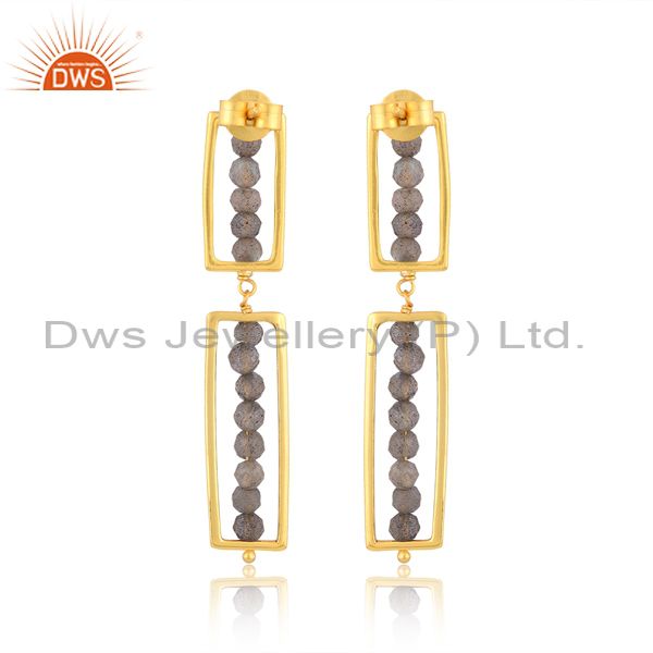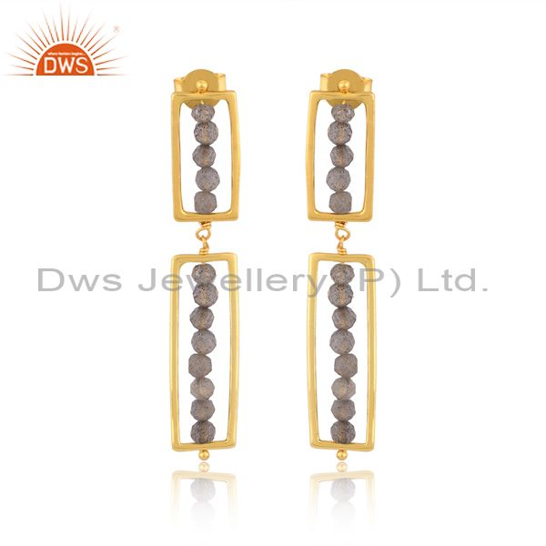 Labradorite Set Gold On 925 Sterling Silver Earwire Earrings