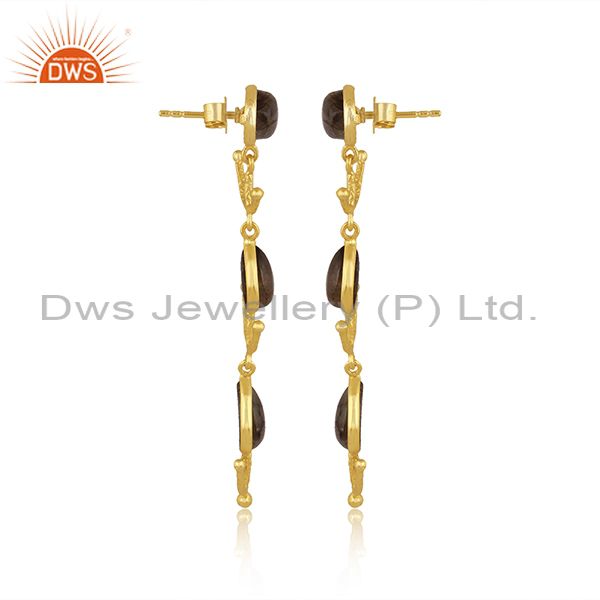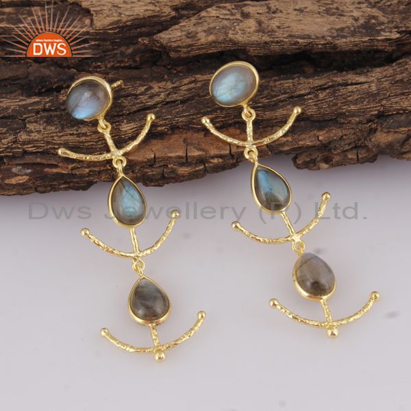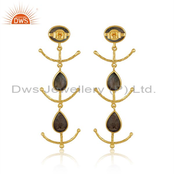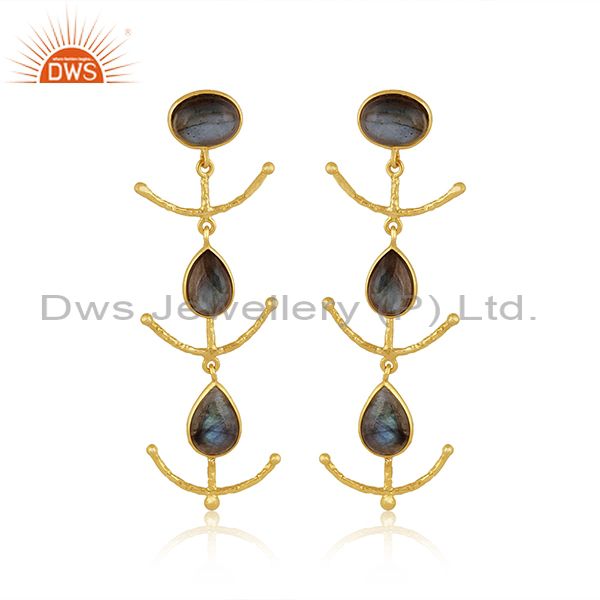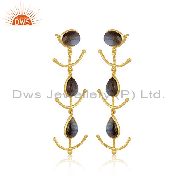 Labradorite Set Gold On Sterling Silver Long Drop Earrings