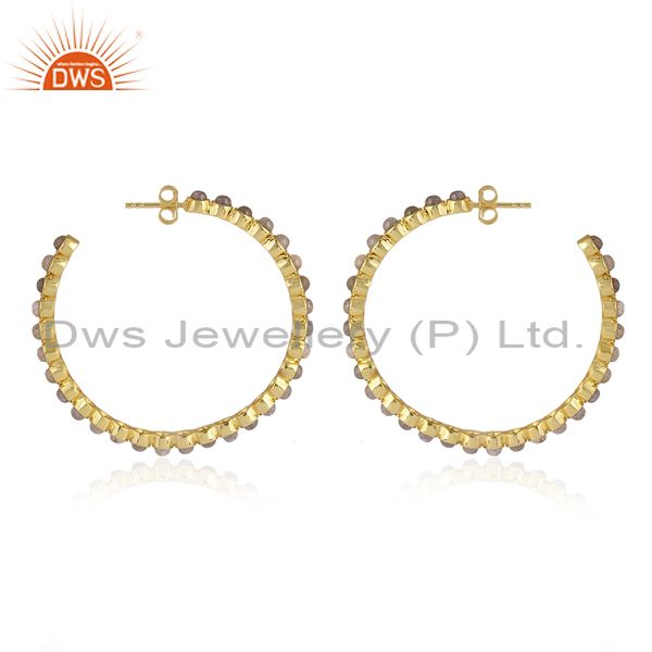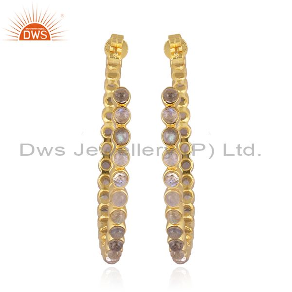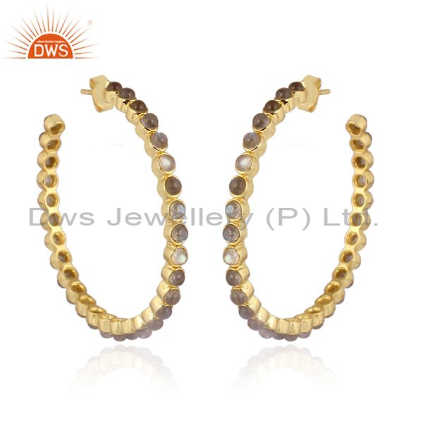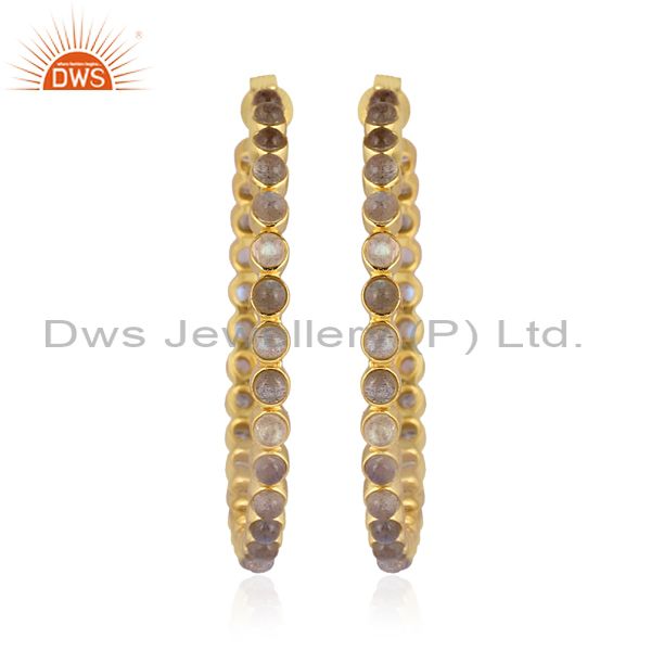 Labradorite Set Gold On Sterling Silver Round Hoop Earrings