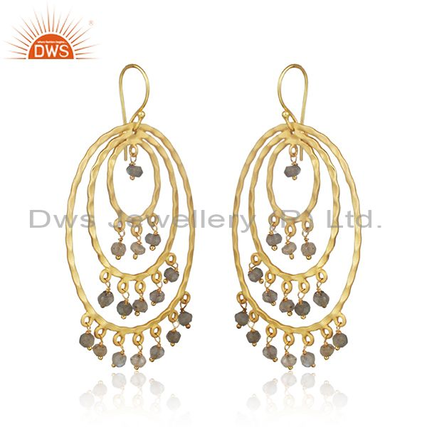 Labradorite Set Sterling Silver Gold Plated Round Earrings