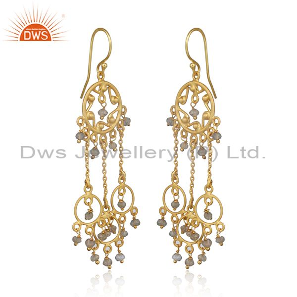 Labradorite Sterling Silver Gold Plated Chandeliers Earrings