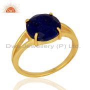 Lapis Flat Shape Pefect Drop 14K Gold Plated Wholesale 92.5 Silver Earring